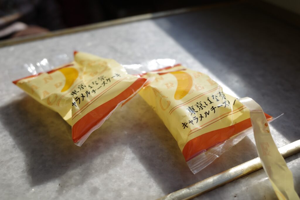 旅のお供は、姉からもらった「東京ばなな」。これから東京へ行くのに……という夫のツッコミを横目に、美味しくいただきました。