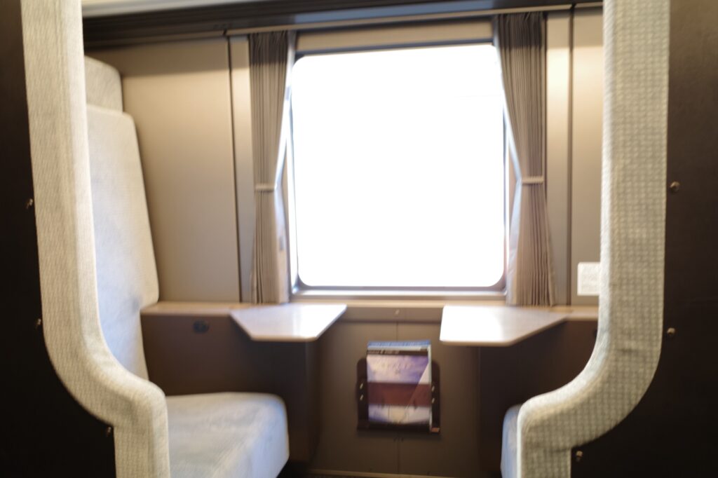 今回は、元気な息子が周りに気兼ねせず過ごせるよう、奮発してコンパートメント(個室)を予約。