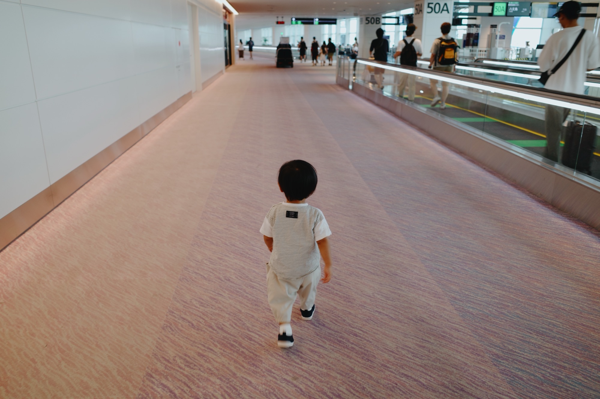 搭乗時間が近づいたので、おむつを替えて搭乗口に戻ると、丁度事前改札サービスの案内が始まった。(2歳以下の子供連れや妊娠中の方が利用できる、先に機内に入れるサービス)今回はこのサービスを利用した。