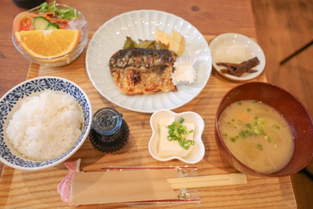 こんな風に一日の始まりを迎えられるなんて、まさに理想の朝。席に運ばれてきた定食は、見た瞬間に心がほぐれるような素朴さと温かみがあって、それだけで嬉しくなる。子連れでの旅行はバタバタしがちだけど、こういう「ホッとできる時間」があると救われる。