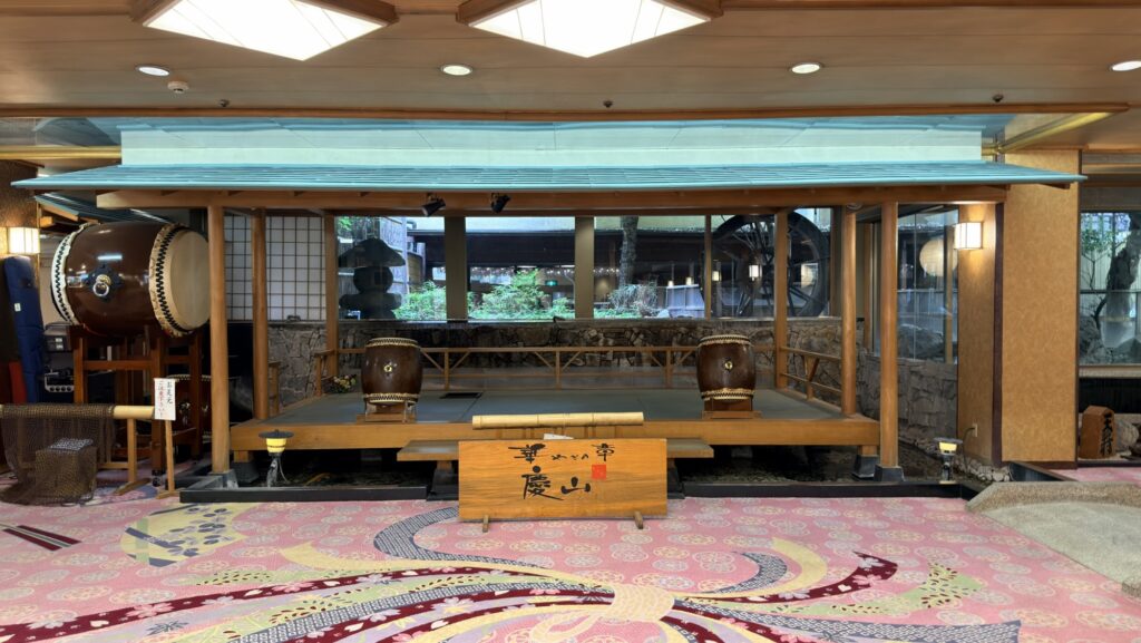 慶山では、毎晩20時からロビーで「太鼓ショー」が行われているそう。 ゆーくんも起きていたので、みんなで見に行ってみることにしました。