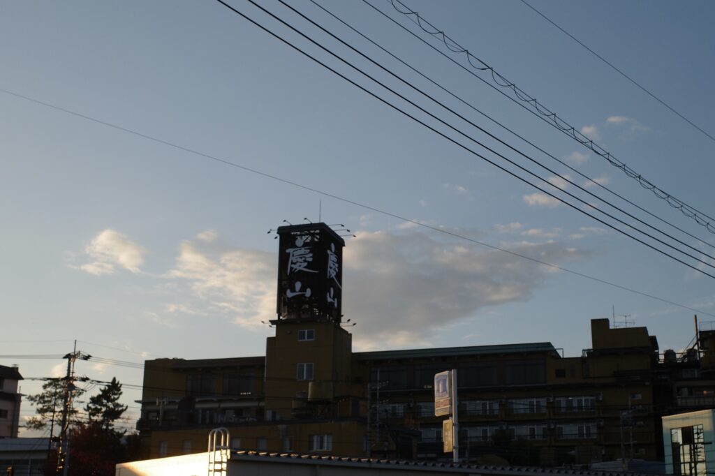 宿泊したのは石和温泉にある「華やぎの章 慶山」。 名前は知っていましたが、実際に訪れるとやはり大きい! 堂々とした店構えの、立派な老舗旅館です。